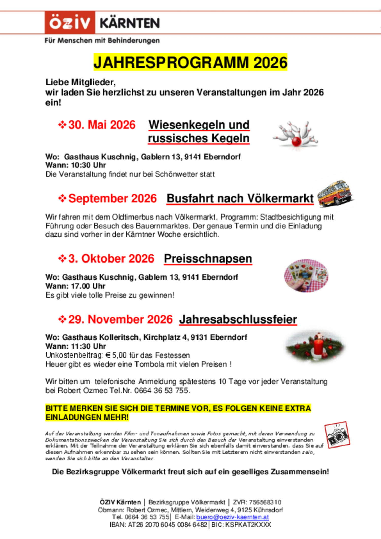 Kontakt: Obmann Robert Ozmec, Tel: 0664 36 53 755